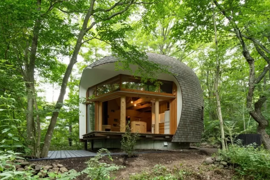 58 m² Natural Shell House Design: Villa Born from the Earth in Shinshu Forest